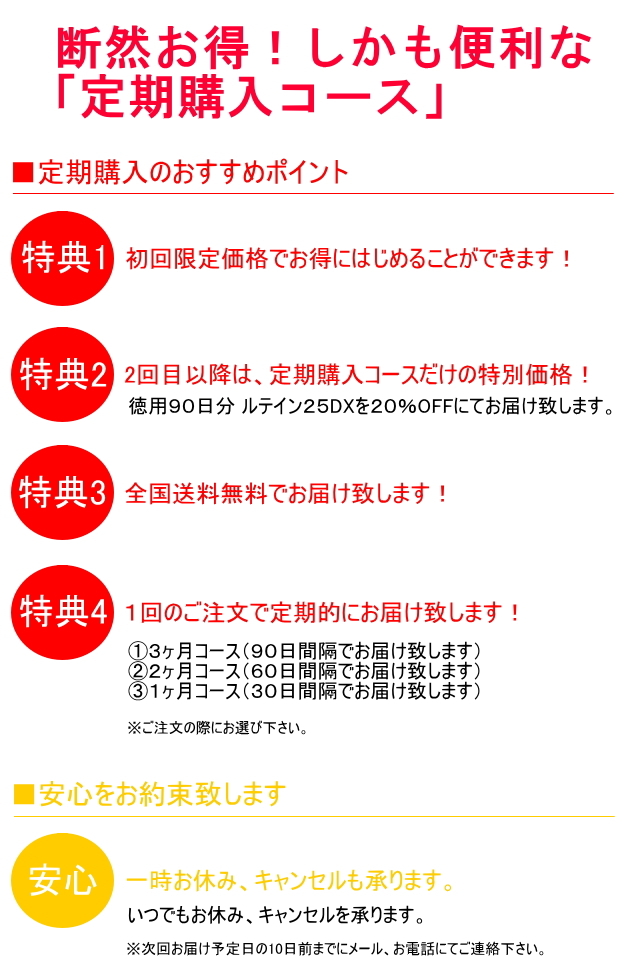 | 主要成分 | 【1粒当たり】ルテイン25mg、ゼアキサンチン2mg |