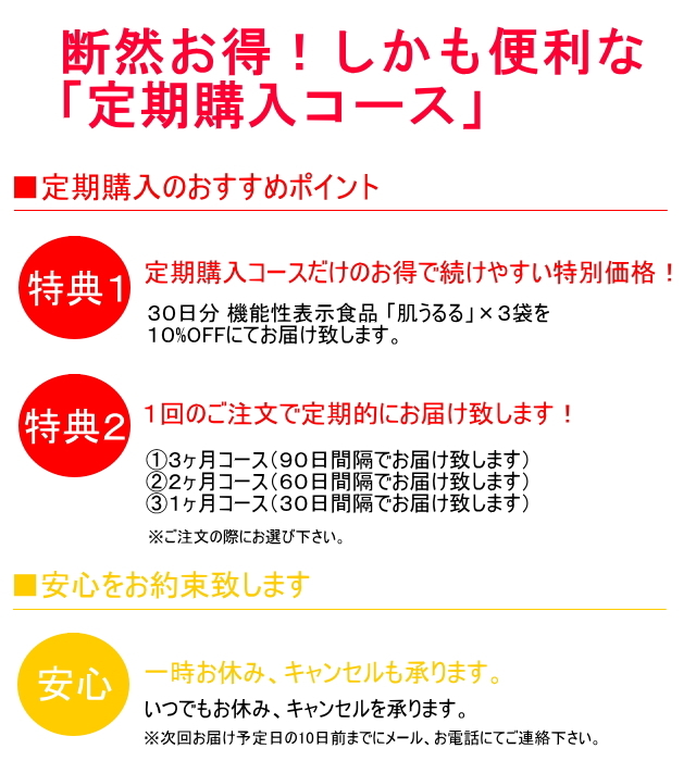※【定期購入】やわた【機能性表示食品】30日分 肌うるる×3袋セットは、1セットが3袋(約90日分)でのお届けとなります。