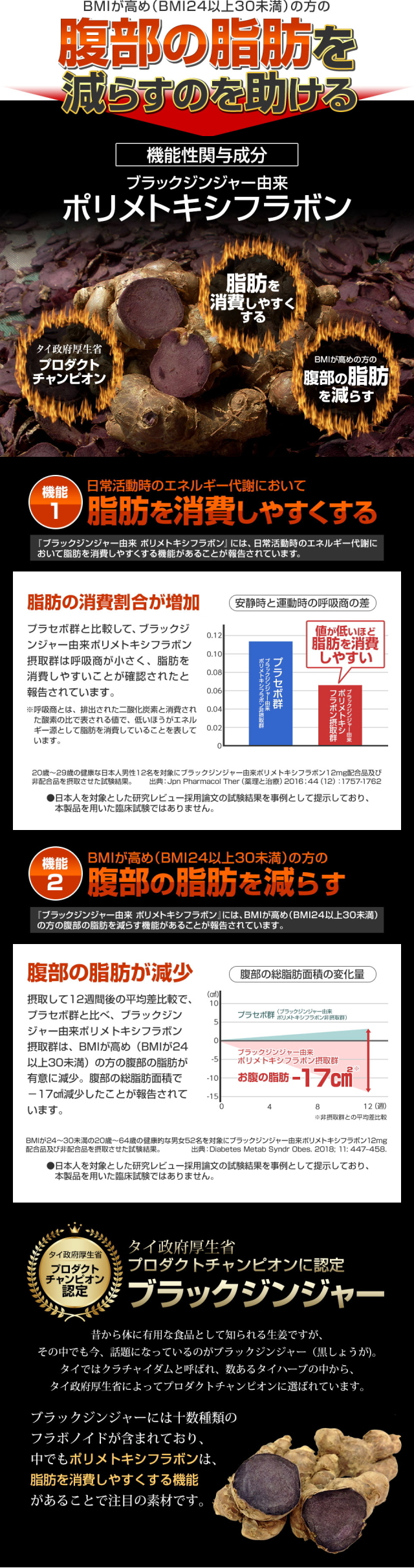 | 主要成分 | 【2粒当たり】【機能性関与成分】ブラックジンジャー由来ポリメトキシフラボン:12mg |