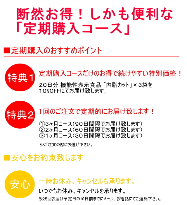 ※【定期購入】やわた【機能性表示食品】20日分 内脂カット×3袋セットは、1セットが3袋(約60日分)でのお届けとなります。